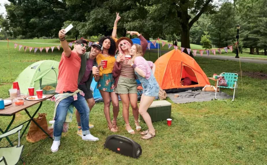 Колонка обладает по-настоящему мощным звуком. Два низкочастотных динамика и два высокочастотных выдают громкость до 110 дБ, так что Boombox 2, если понадобится, сможет раскачать весь пляж. А если и этого не хватит, то благодаря поддержке технологии PartyBoost можно объединить несколько колонок JBL вместе для синхронного воспроизведения. К тому же фирменная проработка звука JBL, в том числе и глубокий насыщенный бас — на месте, так что мощное звучание обеспечено.