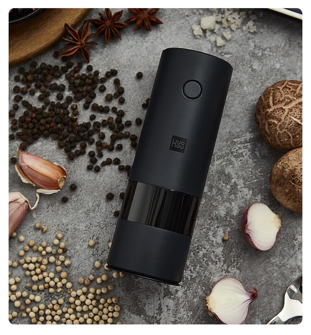 Xiaomi HuoHou Electric Grinder - электрическая мельница для соли, перца и других специй. Минималистичный корпус и классический цвет позволяют устройству стать идеальным аксессуаром на любой кухне