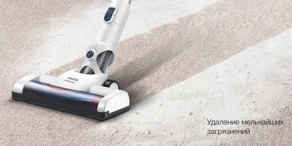 Регулярная уборка пыли помогает содержать дом в чистоте. Пылесос SWDK оснащен съемным литиевым аккумулятором, одного заряда которого хватит на 30 минут работы или на уборку площади 150 м².